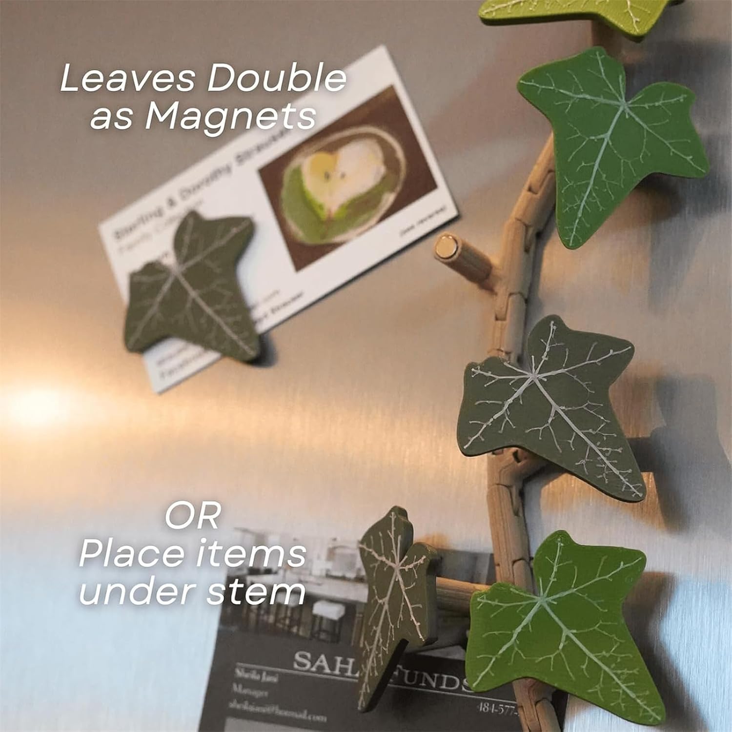 Multifunctional Ivy Magnets: These plant refrigerator magnets can be easily customized by adding additional magnets to the stems, making them perfect for holding photos, notes, and shopping lists securely